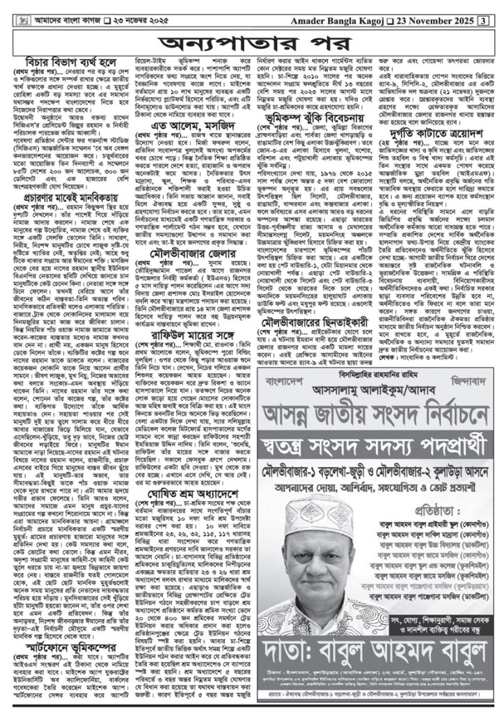 বাংলা কাগজ || ২২ তম বর্ষ || ০৩ সংখ্যা || ০৮ই অগ্রহায়ন ১৪৩২ || ২৩ নভেম্বর ২০২৫ || বিকে/মাহবুব বিকে/মাহবুব প্রকাশিত: ১১:১৩ অপরাহ্ণ, নভেম্বর ২২, ২০২৫ | আপডেট: ১১:১৩:অপরাহ্ণ, নভেম্বর ২২, ২০২৫ SHARES Post Views: ৩ SHARES আরও পড়ুন বাংলা কাগজ || ২২ তম বর্ষ || ০২ সংখ্যা || ১৬ ভাদ্র ১৪৩২ || ৩১ আগষ্ট২০২৫ || বাংলা কাগজ || ২২ তম বর্ষ || ০১ সংখ্যা || ০৫ শ্রাবণ ১৪৩২ || ২০ জুলাই ২০২৫ ||