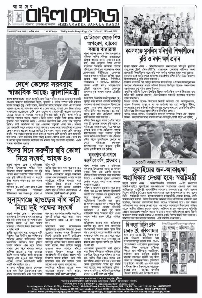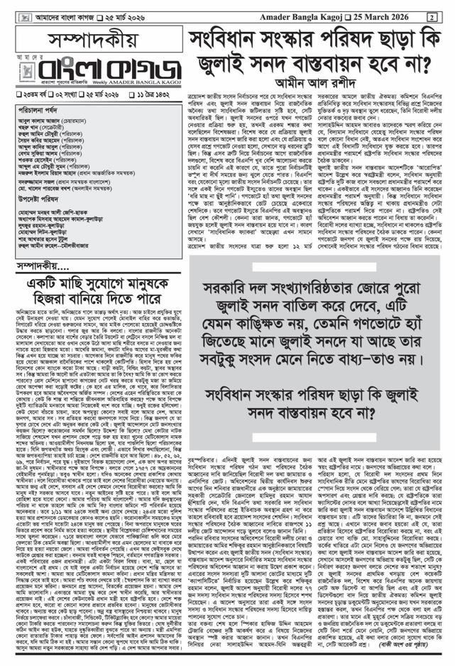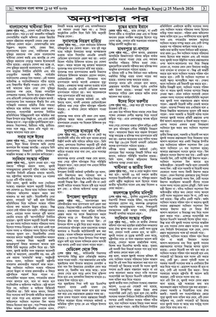 বাংলা কাগজ || ২৩ তম বর্ষ || ০২ সংখ্যা || ১১ চৈত্র ১৪৩২ || ২৫ মার্চ ২০২৬ || বিকে/মাহবুব বিকে/মাহবুব প্রকাশিত: ৮:০৯ পূর্বাহ্ণ, মার্চ ২৫, ২০২৬ | আপডেট: ৮:০৯:পূর্বাহ্ণ, মার্চ ২৫, ২০২৬ SHARES Post Views: ৭ SHARES আরও পড়ুন বাংলা কাগজ || ২২ তম বর্ষ || ০৩ সংখ্যা || ২২ই অগ্রহায়ন ১৪৩২ || ০৭ ডিসেম্বর ২০২৫ || বাংলা কাগজ || ২২ তম বর্ষ || ০৩ সংখ্যা || ০৮ই অগ্রহায়ন ১৪৩২ || ২৩ নভেম্বর ২০২৫ ||