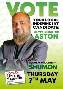 বার্মিংহাম সিটি কাউন্সিলের বাঙালী অধ্যুষিত আষ্টন ওয়ার্ড থেকে স্বতন্ত্র প্রাথী হওয়া আব্দুল এম চৌধুরী সুমন আষ্টনের বাসিন্দা হওয়ার সুবাধে একেবারে ছোটবেলা থেকে লেখা-পড়া বেড়ে উঠা সবকিছুই আষ্টনকেন্দ্রীক হওয়ায় সকলের কাছেই তিনি বেশ পরিচিত। আষ্টনের উইটন রোডে প্রায় তিন দশক ধরে তার নিজস্ব ব্যবসা প্রতিষ্টান থাকায় একেবারে শুরু থেকেই তিনি কমিউনিটির মানুষদের জন্য নানাভাবে কাজ করে যা”্ছনে যা তার জন্য এই নির্বাচনে একটি বাড়তী পাওনা। শুধু নির্বাচন উপলক্ষ্যে নয় ; তার ব্যবসা প্রতিষ্টানটি মুলতঃ কমিউনিটির মানুষদের একধরনের মিলন স্থলই ; প্রতিনিয়ত নানাজন তাদের নানাবিধ বিষয় নিয়ে আসেন আর আব্দুল এম চৌধুরী সুমন নিদ্বিধায় নিরবচ্ছিন্নভাবে তাদের সমস্যাগুলো সমাধানে সহযোগিতা করে যান। কমিউনিটি প্রাণ ব্যক্তি হিসেবে আষ্টন এলাকায় তিনি বাঙালী ছাড়াও অন্যান্য কমিউনিটির মানুষদের কাছেও প্রচন্ড জনপ্রিয়। আর তিনি স্বতন্ত্র প্রার্থী হওয়ায় দল-মত নির্বিশেষে সকলেরই কাছেই তারঁ গ্রহনযোগ্যতা রয়েছে। মুলধারা ছাড়াও বাংলাদেশী বিভিন্ন সামাজিক সংগঠনের সাথে তিনি সংশ্লিষ্ট রয়েছেন। বাংলা কাগজ ছাড়াও আব্দুল এম চৌধুরী সুমন ব্রিটেনের জনপ্রিয় বাংলাভাষী টেলিভিশন বিঅন টিভি ইউকের ম্যানেজিং ডাইরেক্টর ও প্রধান নির্বাহী,ইউরোপের বিভিন্ন দেশে অনুষ্ঠিত হওয়া বাংলা কাগজ কমিউনিটি এওয়ার্ডের চীফ কো-অর্ডিনেটর,বার্মিংহাম বাংলাদেশ কাউন্সিলের সাধারণ সম্পাদক,গ্রেটার সিলেট ডেভেলাপমেন্ট এন্ড ওয়েলফেয়ার কাউন্সিল ওয়েষ্ট মিডল্যান্ডস রিজিওনের যুগ্ম সম্পাদক,বার্মিংহাম স্পোটিং ক্লাবের প্রধান উপদেষ্টার দায়িত্ব পালন করছেন। এছাড়া তিনি বেশ ক‘বছর বার্মিংহাম কেন্দ্রীয় শহীদ মিনার কমিটির সাধারণ সম্পাদকেরও দায়িত্ব পালন করেন।
